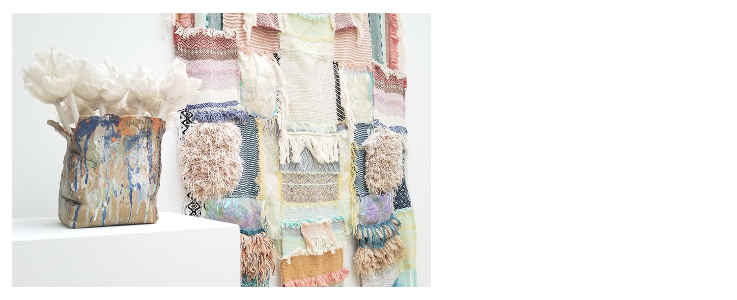 Artworks include: cups, plates, planters, pots, bowls, boxes, tapestries/stitchery,